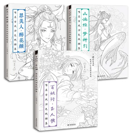 Buy 6pcs Chinese coloring book line sketch drawing textbook Chinese ancient beauty drawing book adult anti -stress coloring books
