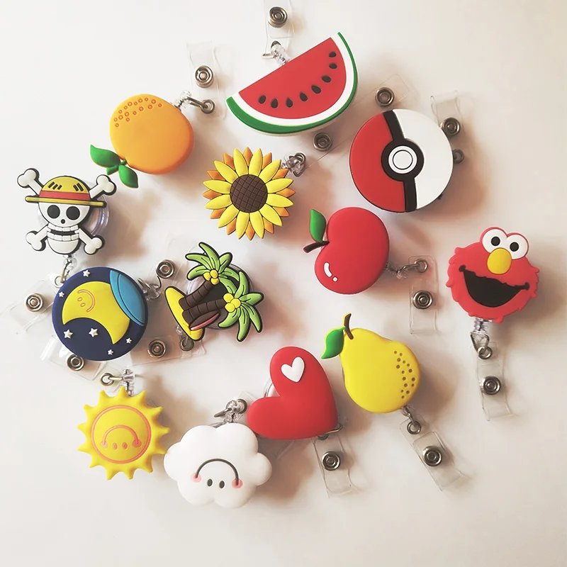 Discount 15Pcs Fashion Fruit Hero Cartoon Retractable Badge Reel Student Nurse Exhibition ID Name Card Badge Holder Office Supplies
